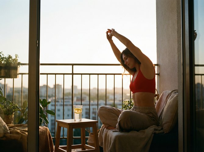 Идеально: утренняя прогулка в первый час после пробуждения. Солнечный свет помогает восстановить нормальный циркадный ритм кортизола.